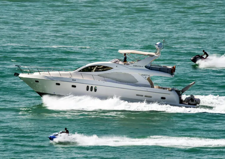 Glide through crystal waters aboard a sleek cruiser built for comfort and elegance.